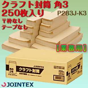 【業務用】 クラフト封筒 角3 250枚入り 〒枠なし テープなし ジョインテックス P283J-K3簡易封筒 業務用封筒 茶封筒 業務用茶封筒J321943